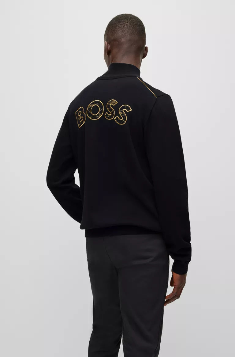 ZIP-NECK LOGO SWEATER IN COTTON AND WOOL