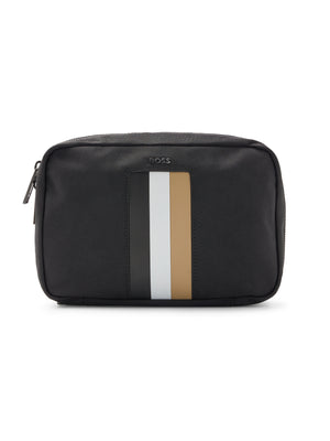 ZIPPED WASHBAG IN RECYCLED FABRIC WITH SIGNATURE STRIPE