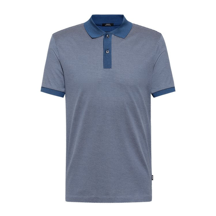 Slim-fit polo shirt in mercerised patterned cotton.A short-sleeved polo shirt in a slim fit by BOSS Menswear. Trimmed with flat-knit elements for subtle contrast,