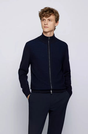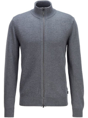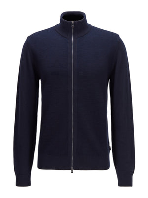 A versatile cardigan by BOSS Menswear, knitted in virgin wool with cotton. Featuring a two-way zip with polished pullers