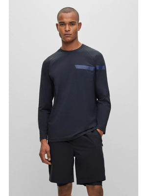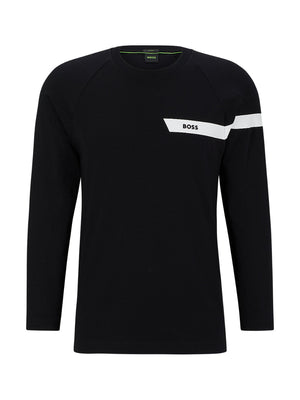 Long-sleeved stretch-cotton T-shirt with stripe and logo